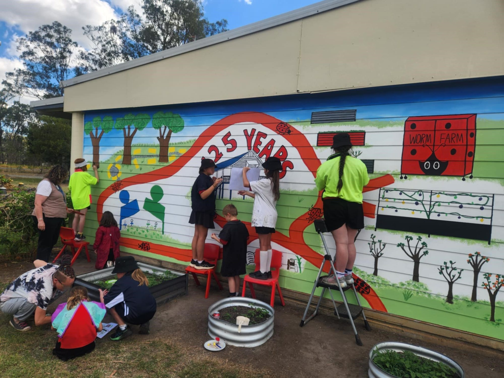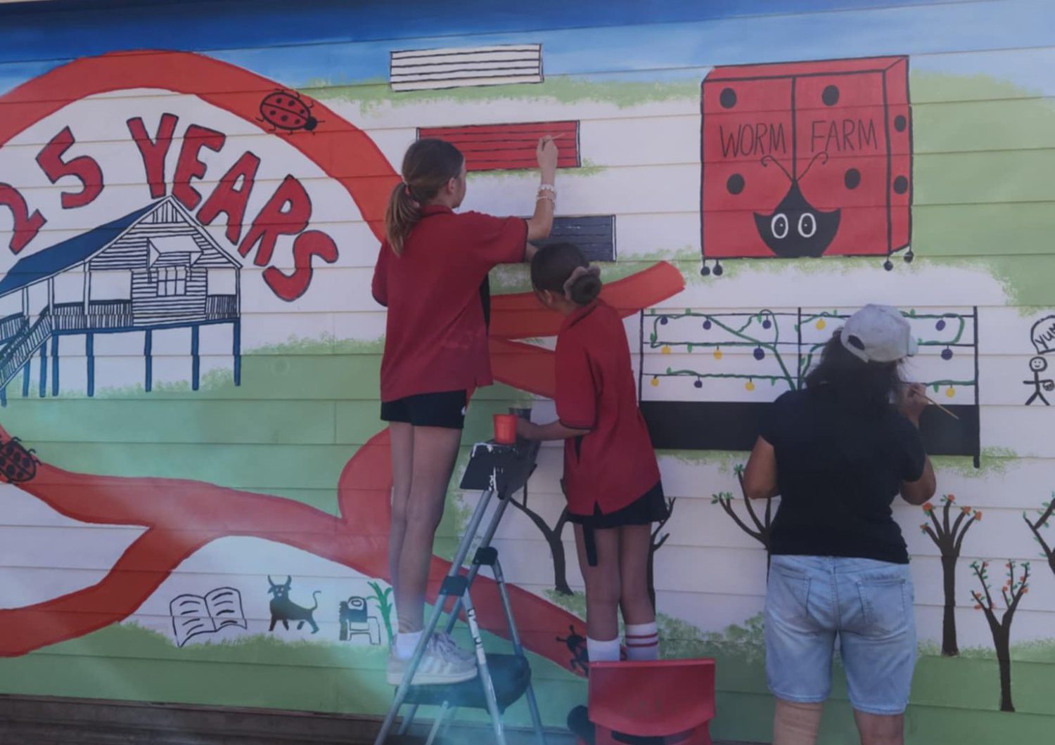 It has also strengthened community connections, with families and volunteers joining painting days – brushes in hand – and supporting the school’s efforts both online and via radio. The project sparked conversations about caring for the environment, living the school values, and leaving a legacy for future generations. The mural has become a living lesson in history, sustainability, and belonging.