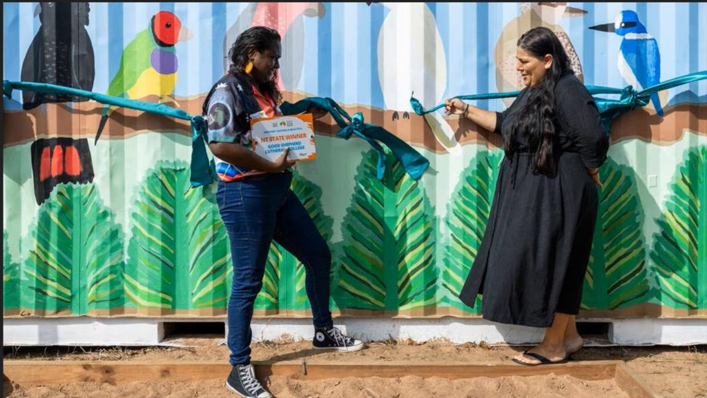 A striking new mural created by students at Good Shepherd Lutheran College NT has advanced to the final stages of the national competition organised by Paint Australia Beautiful Schools Mural Competition, and the young artists are rallying the local community for support ahead of voting closure.