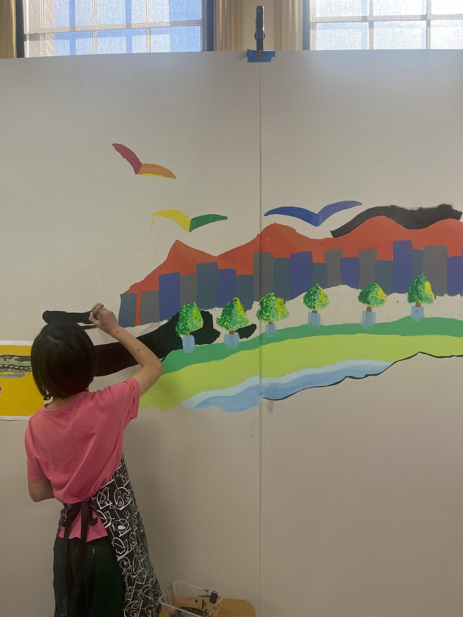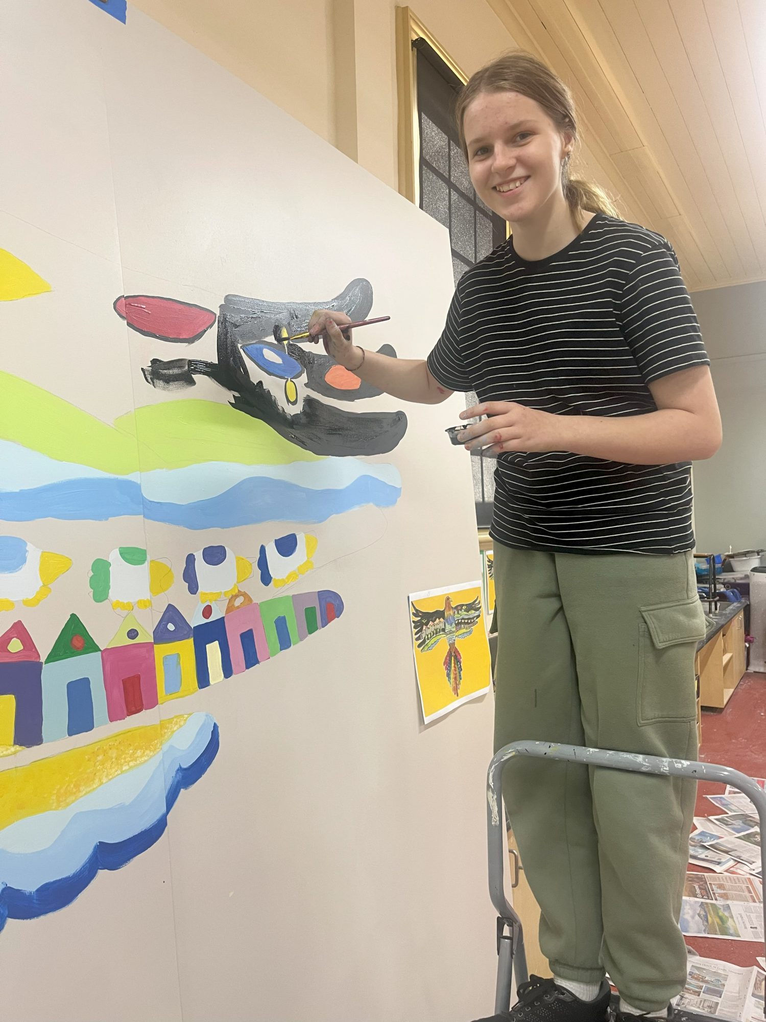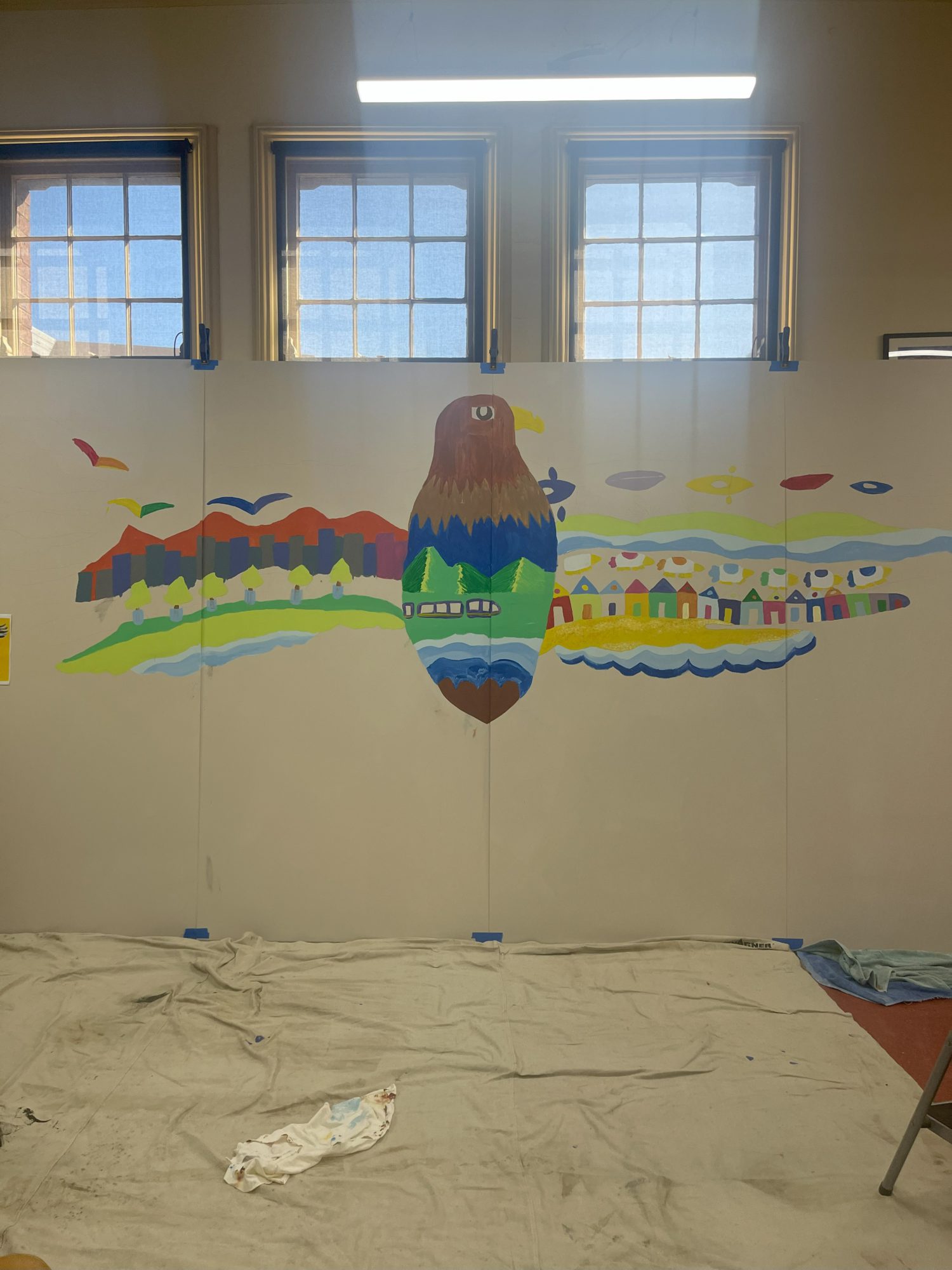 Maichi’s mural design honours the deep connection between our school community and the land of the Wadawurrung People. Inspired by the sacred Bunjil, a Wedged-tailed Eagle revered by First Nations cultures as the creator of the land, flora, and fauna in our region, her artwork reflects the many natural and man-made wonders of this place.